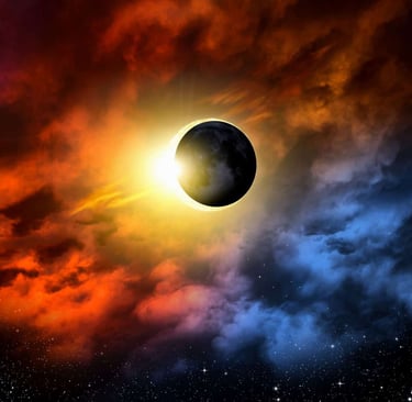 Lua Nova: marca o início do ciclo. A Lua se posiciona entre a Terra e o Sol, ficando invisível a olho nu. Representa recomeços e novos propósitos.
