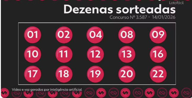 Resultado da Lotofácil 3587 premia duas apostas com mais de R$ 2,7 milhões. Confira números sorteados, valores e próximo prêmio.